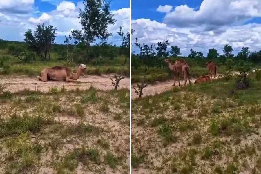 “Do ponto de vista sanitário, toda a documentação está regular e não há risco identificado”, informou o órgão em nota. O vídeo que revelou a presença dos camelos foi gravado por um morador da região, que demonstrou surpresa ao se deparar com a cena.