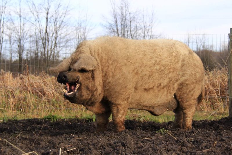 Porco Mangalitsa Foto: DivulgaçãoSe por um lado o Mangalitsa impressiona pelo peso, por outro ele é superado por outras raças em termos de eficiência produtiva. O Pietrain, por exemplo, apresenta ganho diário superior a 1.100 g, rendimento de carne magra acima de 68% e conversão alimentar excelente.