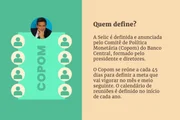 A projeção para a taxa básica de juros, a Selic, deste ano foi mantida em 15% ao ano. Confira as estimativas do mercado financeiro para os próximos anos: