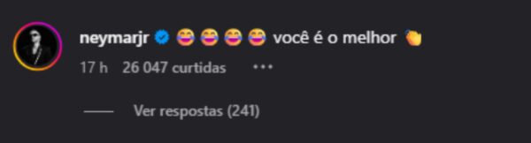 Nos comentários da publicação, Neymar mostrou apoio ao posicionamento do ex-goleiro.