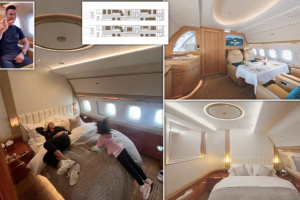 Com interior inteiramente adaptado para o jogador, o avião recebeu pintura preta e exibe, ao lado da porta, as iniciais “CR7” e a silhueta da comemoração clássica do craque. A cabine é ampla e luxuosa, com assentos que se transformam em camas, além de áreas com mesas, sofás e espaços de trabalho. Há ainda uma suíte privada, sendo uma delas equipada com chuveiro.