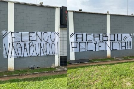 Entre as mensagens expostas, estavam frases como “Elenco vagabundo”, “Acabou a paciência”, “Jogadores omissos” e “Ou joga por amor ou terror”.