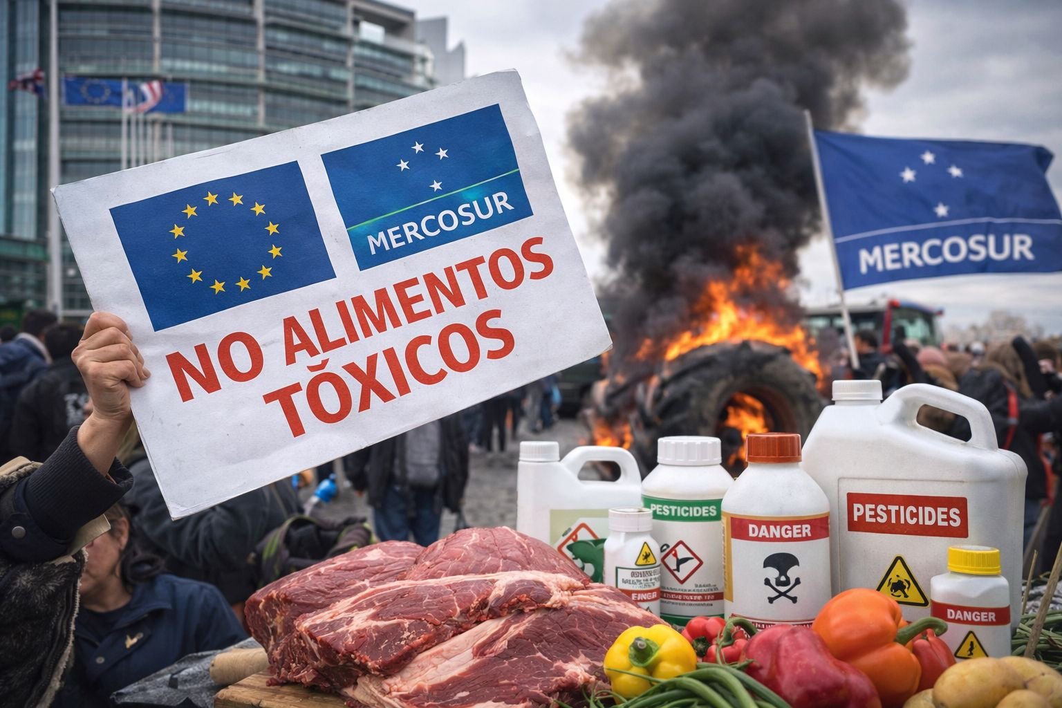 _taboola.push({mode:'thumbnails-mid', container:'taboola-mid-article-thumbnails', placement:'Mid Article Thumbnails', target_type: 'mix'});Para os críticos, o acordo criaria uma concorrência desigual, colocando produtores europeus — submetidos a regras ambientais e sanitárias mais rígidas — em desvantagem frente aos agricultores sul-americanos. A narrativa ganhou força política ao ser associada ao discurso de proteção da saúde pública e do meio ambiente, dois temas altamente sensíveis na Europa . A resposta da União Europeia ao Mercosul Diante da escalada de acusações, a Comissão Europeia reagiu afirmando que o acordo não flexibiliza nem altera as normas sanitárias e fitossanitárias do bloco. Segundo o órgão, nenhum alimento poderá entrar no mercado europeu sem cumprir integralmente os limites máximos de resíduos de pesticidas, as regras sobre organismos geneticamente modificados e a proibição do uso de hormônios de crescimento na produção de carne, em vigor desde 1981. A UE sustenta ainda que já importa produtos do Mercosul atualmente, inclusive carne bovina, e que os controles sanitários em fronteiras e auditorias nos países exportadores já são uma prática consolidada. O acordo, segundo Bruxelas, apenas amplia o comércio, sem reduzir o nível de exigência sanitária . Controles e fiscalização: onde está o conflito Apesar das garantias oficiais, organizações de consumidores e parte dos governos europeus alegam que os controles existentes nem sempre são aplicados com o rigor necessário. Há críticas sobre a capacidade dos Estados-membros de fiscalizar grandes volumes de importação e sobre a limitação de recursos humanos e técnicos para inspeções mais profundas. Ainda assim, autoridades sanitárias europeias defendem que o sistema funciona e que, quando falhas são identificadas, medidas corretivas são adotadas imediatamente, incluindo suspensão temporária de exportações e auditorias adicionais em países terceiros .