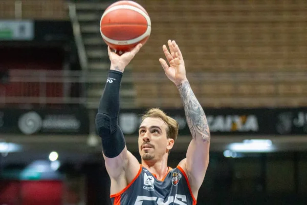 1 de 4 Vezaro foi um dos destaques do Caxias na partida, com 14 pontos, 5 rebotes e 1 assistência Mateus Péres